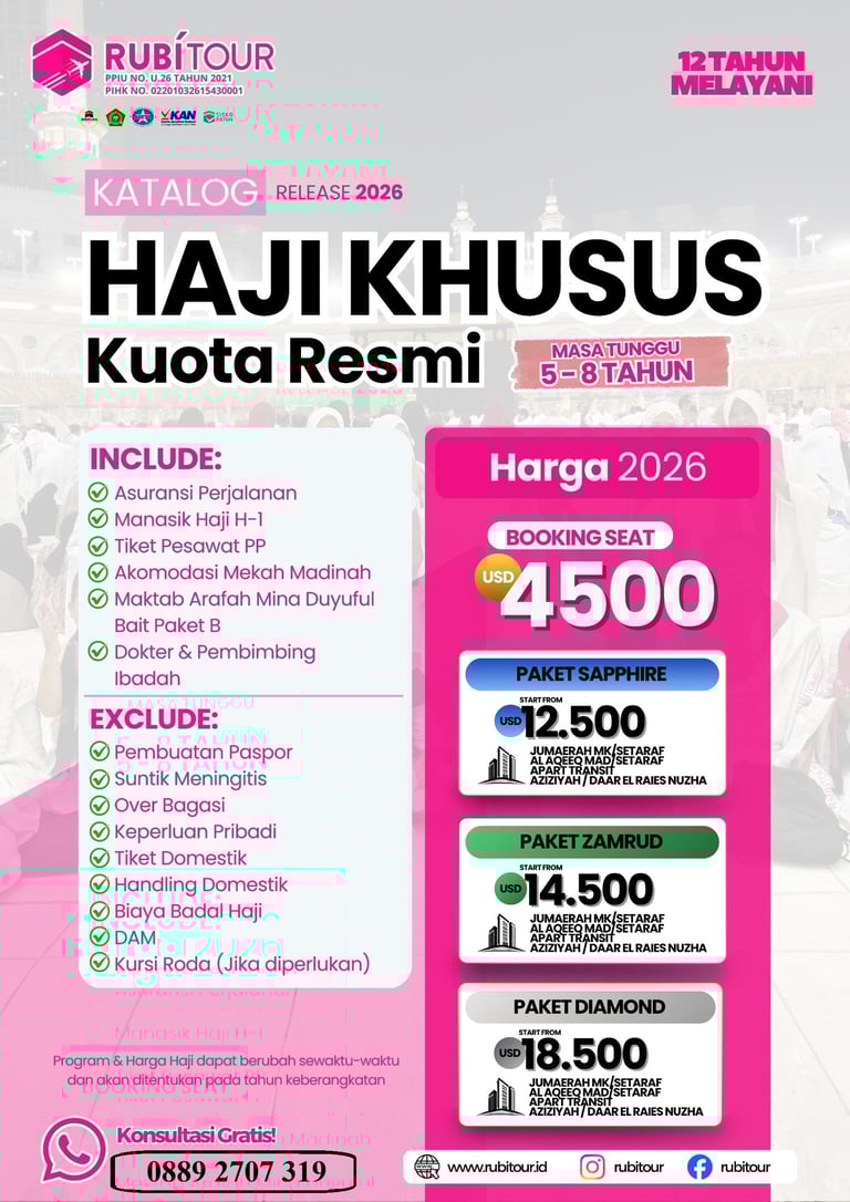MULAI 52 RB/HARI LANGSUNG DAPAT PORSI HAJI KHUSUS RESMI KEMENTRIAN HAJI & UMRAH RI